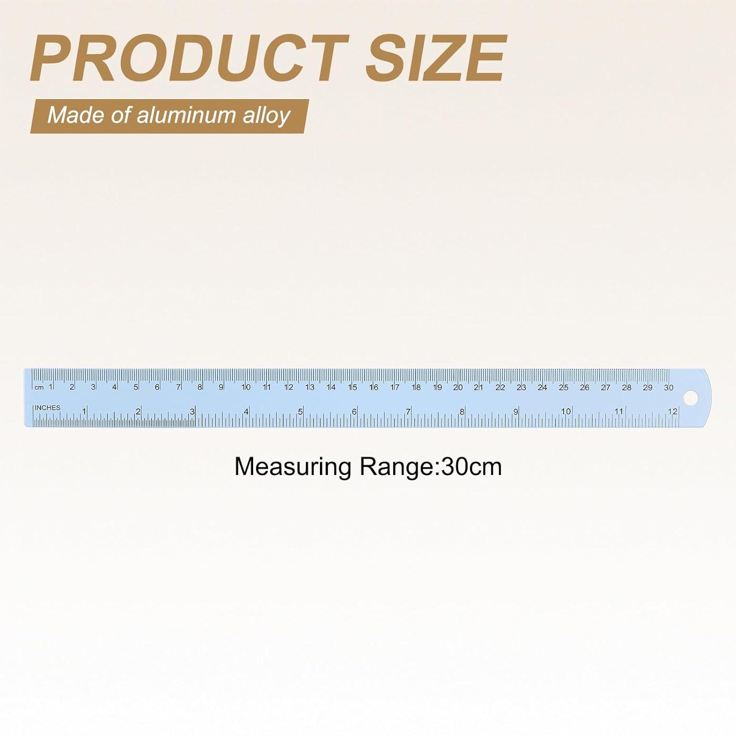 HARFINGTON 6pcs Metal Straight Ruler 30cm Metric SAE Aluminum Alloy Measuring Rulers Scale Tool with Hole for Measure Study Reading Classroom Office, Light Blue