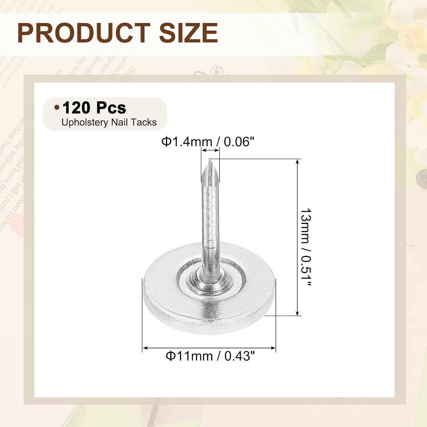 - [Size & Quantity] - The package comes with 120pcs decorative upholstery tacks. Sufficient quantity to meet your different daily needs. The overall size of upholstery nails is about 11mm x 13mm/0.43-inch x 0.51-inch(D*H)