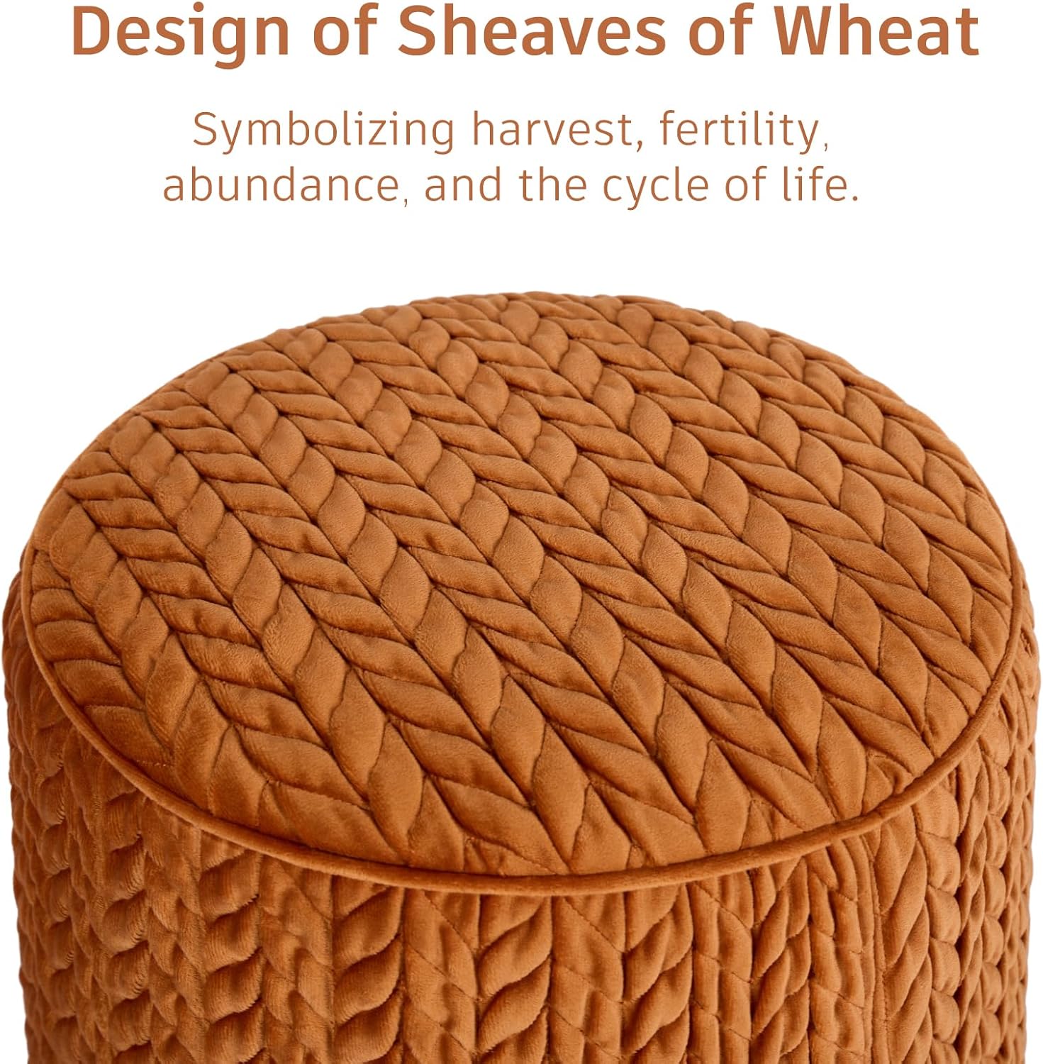 Modern Round Ottoman 2Pcs, Braided-Tufted Foot Stool Ottoman, Velvet Upholstered Vanity Stool for Makeup, Bedroom, Living Room, Dark Orange