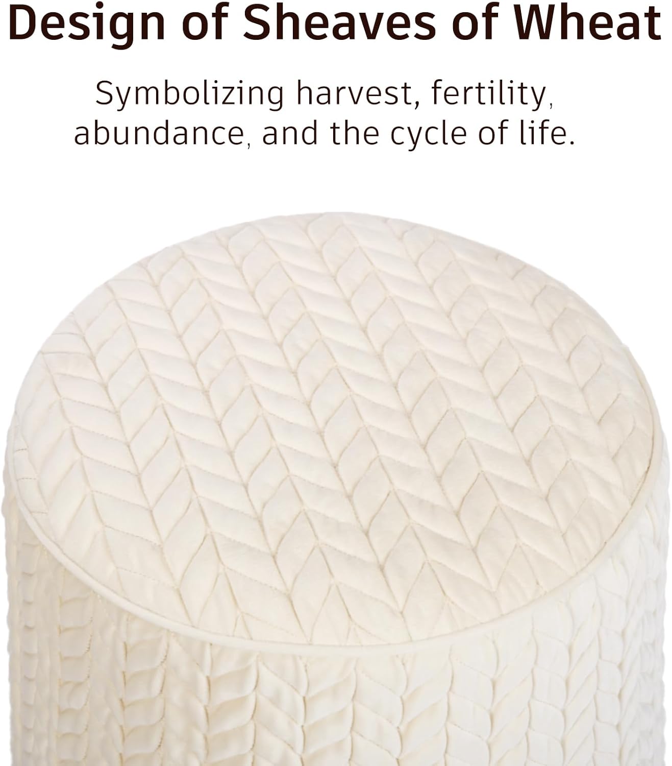 - Selected Material- This small round ottoman is constructed with engineered wood. Padded with soft polyurethane and upholstered in velvet with attractive traditional styling with braided-tufted cushions.
