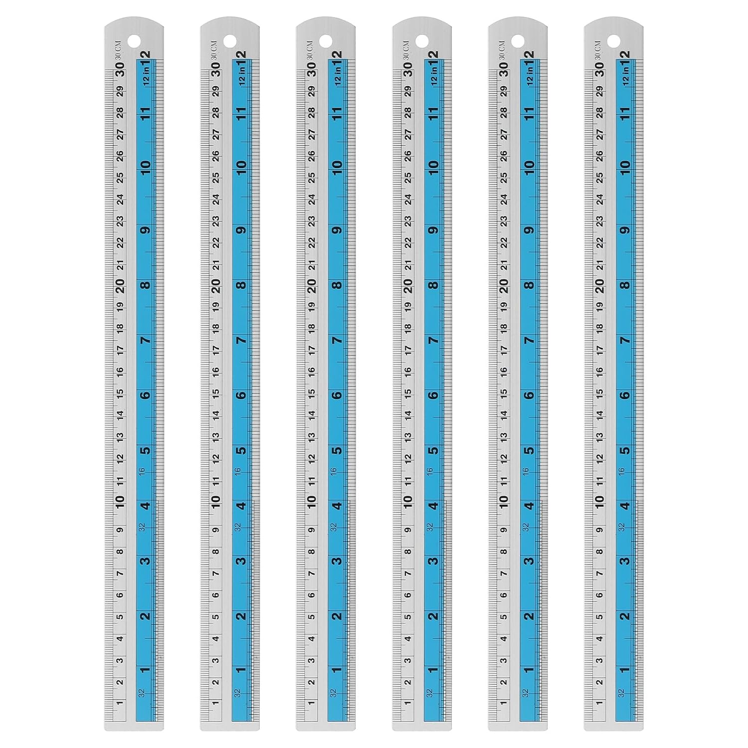 HARFINGTON 6pcs Metal Straight Ruler 30cm Metric SAE Aluminum Alloy Measuring Rulers Scale Tools with Hole for Measure Study Reading Classroom Office, Blue