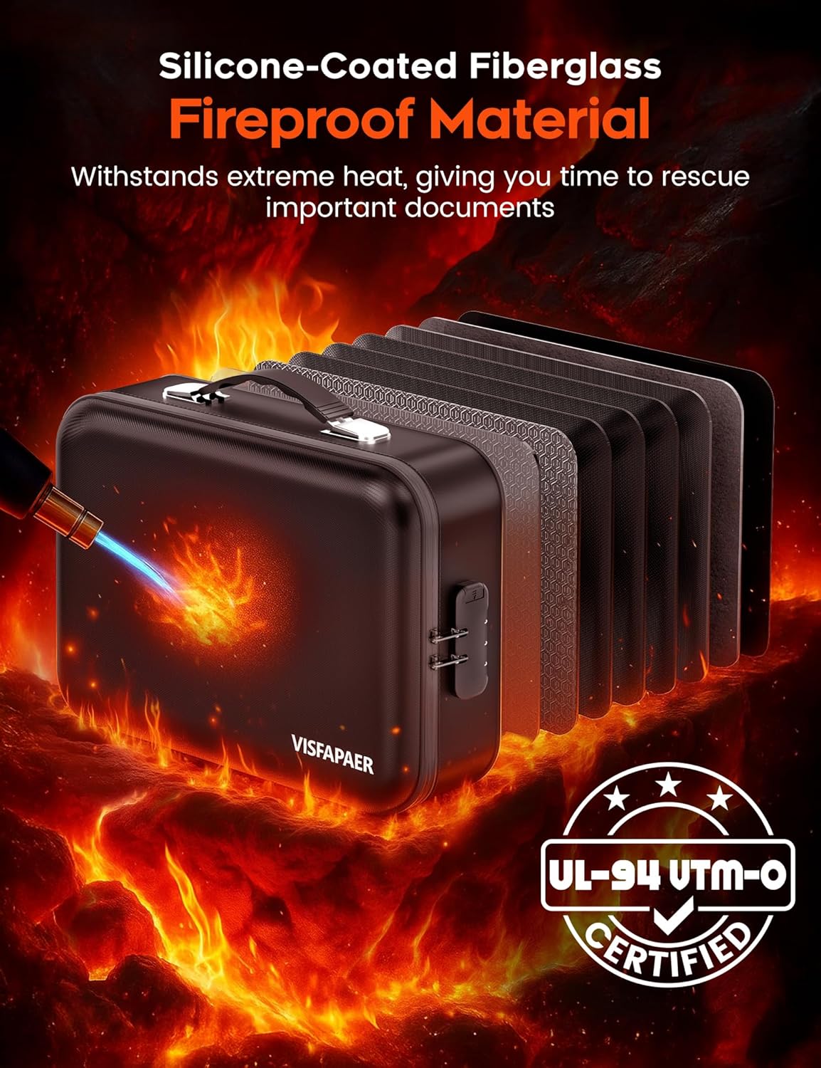 - Certified Fireproof Protection: Our file folder organizer built with 0.8mm premium silicone-coated fiberglass. This fire safe document box resists flames and meets strict UL-94 VTM-0 flammability standards for proven safety
