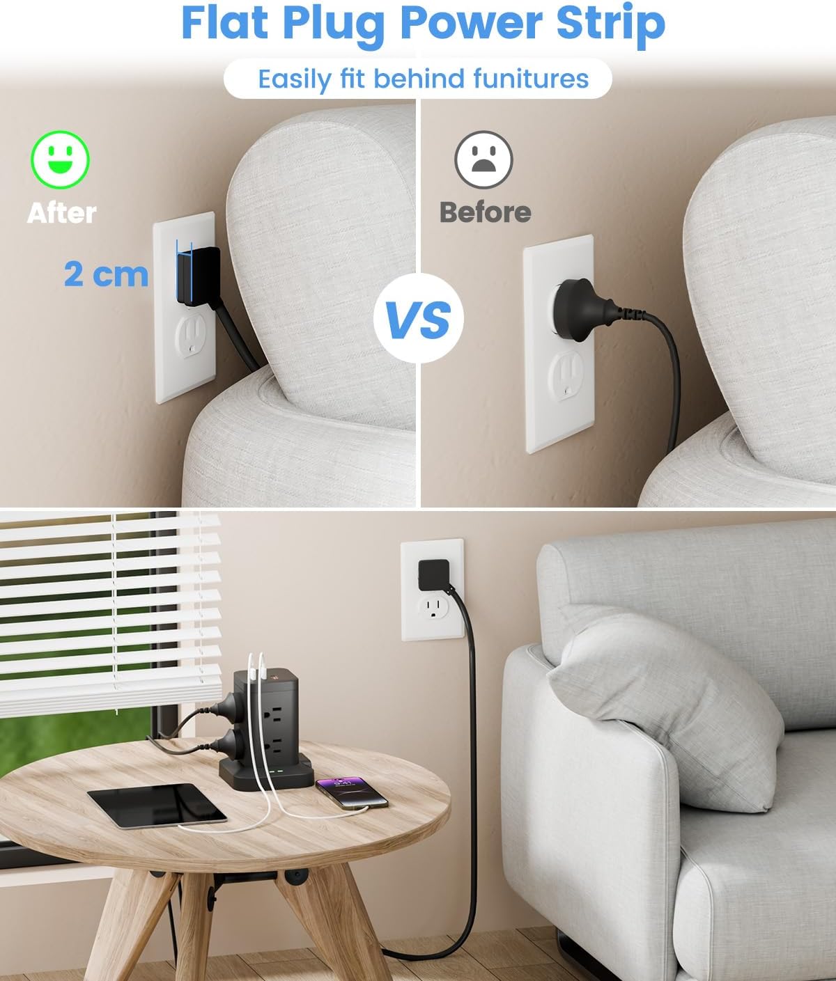 - Safety & Durable Surge Protector Tower: With 1800J Surge Protector prowides overload protection, short-circuit protection, and over-current protection, ensures your electronics stay safe. the extension cords not only long enough but also heavy duty to enhance safety and durability.
