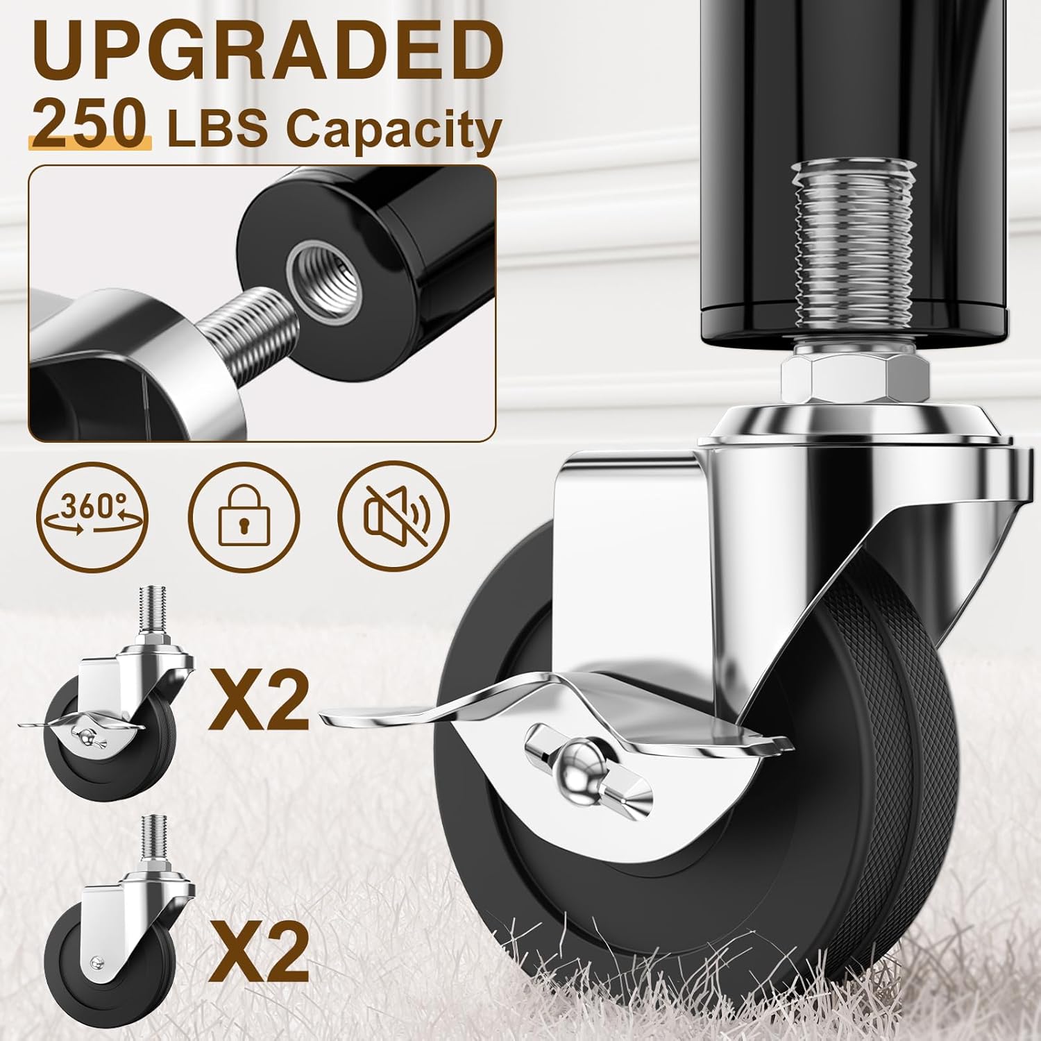 - UPGRADED STURDY WHEELβNO MORE BREAKING! Fybee coat rack upgraded to larger, heavy-duty wheels that won't bend or crack under heavy loads. The smooth 360Β° swivel design makes repositioning effortless, even when the clothing rack with shelves is fully loaded. Two wheels are lockable for added stability, and the upgraded design is both quiet and safe for all floor types. Fybee clothes rack for hanging clothes, built to last, built for convenience.