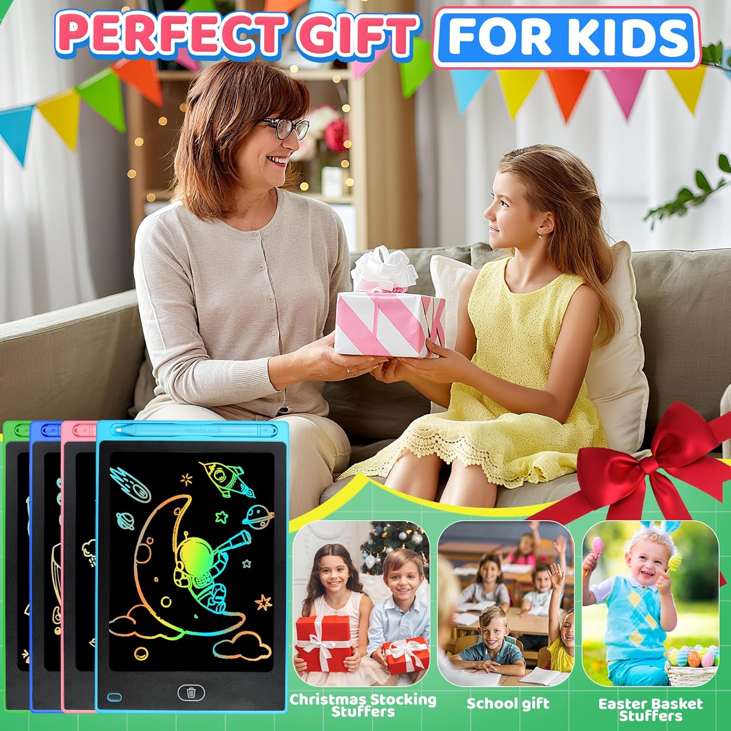 - Ideal Gifts and Prize for Kids: The multi-functional LCD writing board is an ideal gift for toddlers, especially suitable as an educational toy for preschoolers, cultivating children's various abilities during play. Whether it's back to school, home learning, or various festival occasions such as birthdays, Easter, Children's Day, Thanksgiving, and Christmas, it is an excellent choice for parents to pick gifts, conveying care and creativity.